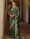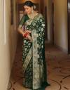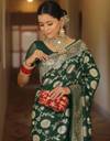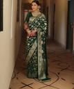 Discover A Stunning Assortment Of Beautifully Crafted Sarees At Samah Sarees .Saree Fabric : Silk Blend & Blouse Fabric : Silk Blend :: Saree Color : Dark Green & Blouse Color : Dark Green :: Saree Work : Dyed, Jacquard & Blouse Work : Dyed, Jacquard Border :: Saree Length : 5.40Mtr & 0.80Mtr