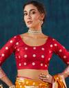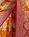 This saree from the house of samah is made from silk and is turmeric yellow, red in color. Samah ethnic sarees comes with blouse piece,which can be stitched according to your taste and preference.This saree is crafted by skill craftsmen without compromising on its quality.With this beautiful design and fabric, this saree will fetch you oodles of compliments and praise. Saree fit size is 5.3 Mtr saree & 0.8 Mtr blouse, free size .