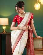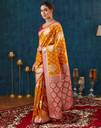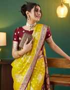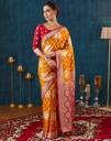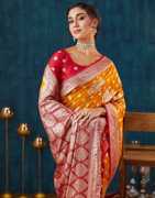 Discover a stunning assortment of beautifully crafted sarees at samah sarees on .Saree fabric : silk & blouse fabric : silk :: saree color : turmeric yellow, red & blouse color : red, golden :: saree work : weaving, tassels & blouse work : weaving :: saree length : 5.30Mtr & 0.80Mtr