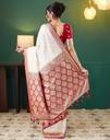 This saree from the house of samah is made from silk and is white, red in color. Samah ethnic sarees comes with blouse piece,which can be stitched according to your taste and preference.This saree is crafted by skill craftsmen without compromising on its quality.With this beautiful design and fabric, this saree will fetch you oodles of compliments and praise. Saree fit size is 5.3 Mtr saree & 0.8 Mtr blouse, free size .
