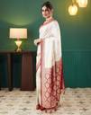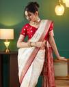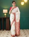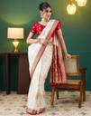 Discover a stunning assortment of beautifully crafted sarees at samah sarees .Saree fabric : silk & blouse fabric : silk :: saree color : white, red & blouse color : red, golden :: saree work : weaving, tassels & blouse work : weaving :: saree length : 5.30Mtr & 0.80Mtr