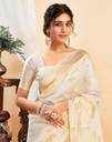 Silk Blend Jacquard (Weaving) Off White Color Saree With Blouse