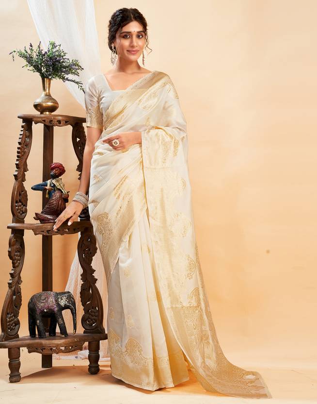 Discover A Stunning Assortment Of Beautifully Crafted Sarees At Samah Sarees On Flipkart.Saree Fabric : Silk Blend & Blouse Fabric : Silk Blend :: Saree Color : Off White & Blouse Color : Off White :: Saree Work : Jacquard (Weaving) & Blouse Work : Jacquard(Weaving) Border :: Saree Length : 5.50 Mtr & Blouse Length 0.80 Mtr