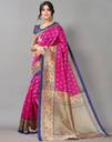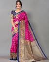 Poly Silk Printed Rani Pink & Beige Color Saree With Blouse Piece