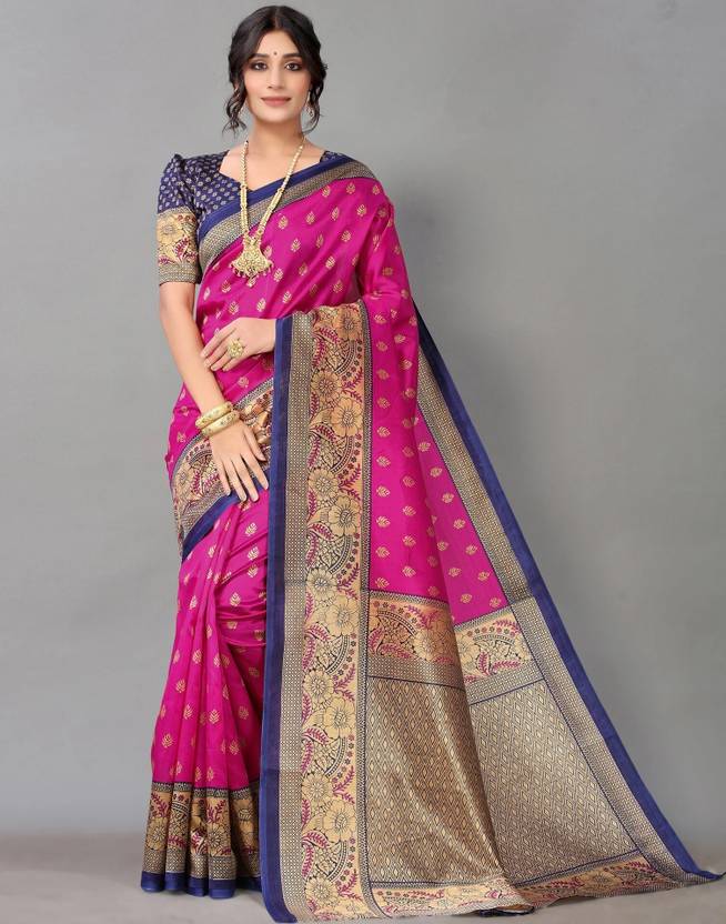 Discover a stunning assortment of beautifully crafted sarees at samah sarees .Saree fabric : poly silk & blouse fabric : poly silk :: saree color : rani pink, beige & blouse color : navy blue, beige :: saree work : printed & blouse work : printed :: saree length : 5.30Mtr & blouse length 0.70Mtr