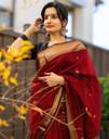 Cotton Blend Dyed, Jacquard Red, Black Color Saree With Blouse Piece