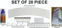 Set of 28 Piece (7 piece Arch set with each 68 CM long, 13 Connecting piece, 2 piece Heavy Thick Side Stand Bars each 1.25 Feet long and 4 piece 6 inch Bars to support Side Stand Bars.) 25ml PVC Solvent and Assembling Guidelines Booklet.