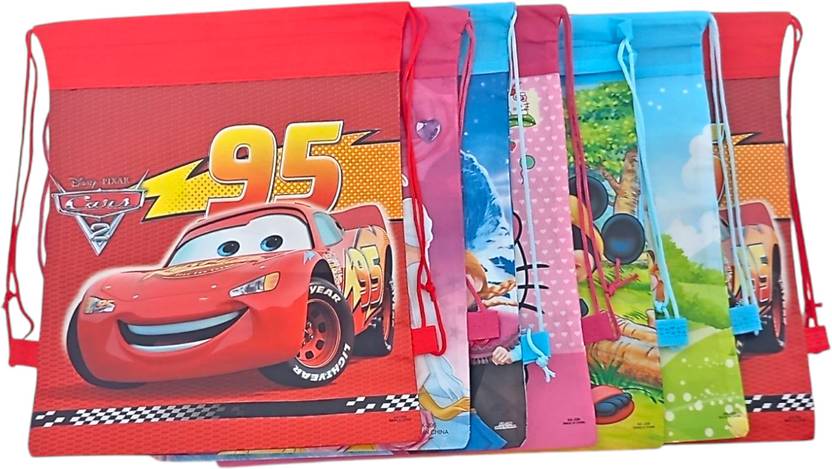 Contains 10 Haversack Bags for birthday returned gifts. Measure about 10 inch breadth and 13 inch height. Various cartoon characters are printed on the bags. Suitable for return gifts to kids and small children. Random designs will be send.