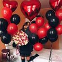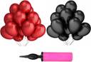 Sambaby Solid Metallic Red and Metallic Black Balloon with Pump Balloon (Red, Pack of 51)