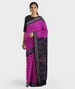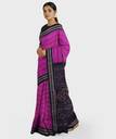 Floral Print, Dyed Sambalpuri Cotton Blend Saree (Pink, Black)