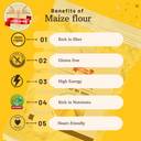 • 100% Pure and Natural Maize Flour For Food, It contains vitamin A, C, K along with beta-carotene and selenium which helps improve the thyroid gland functioning and maintain a good immune system., Maize flour is derived from the ground and desiccated seed of the maize plant., low in saturated in fat and has virtually no cholesterol, Maize cobs are also used as a biomass fuel source.