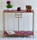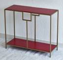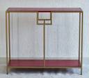 SamDecors Solid Wood Kenny Multipurpose Console Hall Table with Two Shelves in Red Finish and Iron Frame in Golden Finish Solid Wood Console Table (Finish Color - Red, Pre-assembled)
