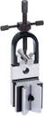 V-block has (4)3/8"16 tapped holes, (2) in the; base and (1) on each side for angle iron clamping; Block is provided with black oxidized clamp