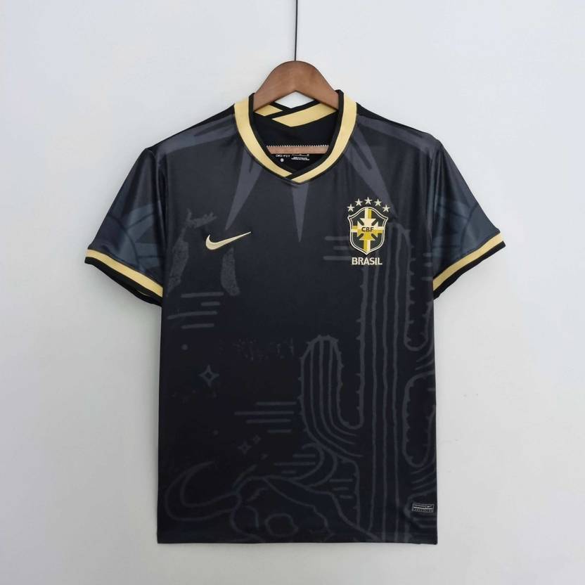 Brazil Black Jersey 2022-23 Highly breathable fabric helps keep sweat off your skin, so you stay cool and comfortable on the pitch or in the stands. This product is made from 100%-recycled polyester fabric.