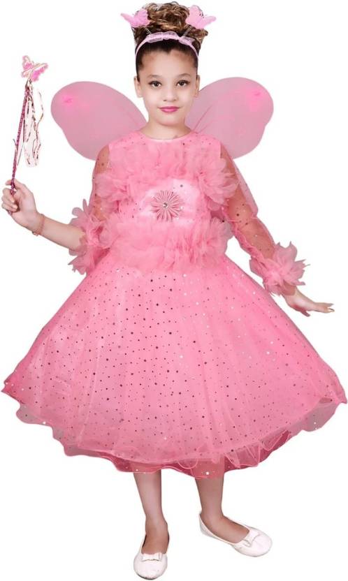 SAMJHO FASHION Girls Maxi/Full Length Party Dress (Pink, 3/4 Sleeve)