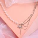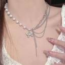 korean butterfly rhinestone layered necklace Silver Plated Alloy Necklace