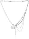 Samna Handicrafts korean butterfly rhinestone layered necklace Silver Plated Alloy Necklace