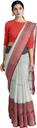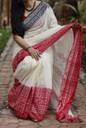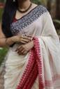Woven Handloom Cotton Blend Saree (Red, White, Black)