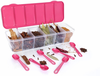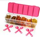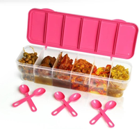 Designed as a practical storage solution, this container features a transparent rectangular form in a six-in-one format, complete with a secure lid and up to six individual compartments. The clear construction keeps contents easily visible, helping items to be identified quickly during daily use. Also, matching spoons are included to support convenient handling and portioning while storing or serving. By bringing multiple compartments together in a single unit, this container encourages organised storage while retaining a compact and easy-to-place design.