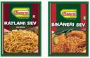 1.RATLAMI SEV (400G) - RATLAMI SEV Hot Slims Spicy Tibdits Made From ChickpeasFlour. INGREDIENTS : Split Chickpea flour, Edible Vegetable Oil(palmolein oil), Lodised, Salt, Red Chili Powder, Spice Blend, Dew Bean Flour(moth flour).