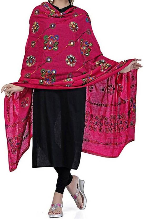 Pure Cotton Embroidered Multicolor Women Dupatta