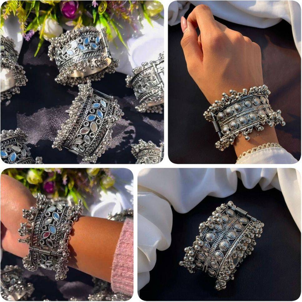 Combo of 2 Oxidised Mirror and Ghungroo Openable Bangles Kada or Cuff Braclet for Women and Girls