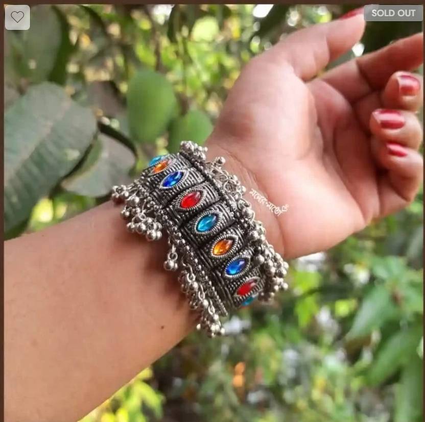 Antique Silver Bracelet Bangles For Girls , Handcrafted Tribal Cuff Bracelet
