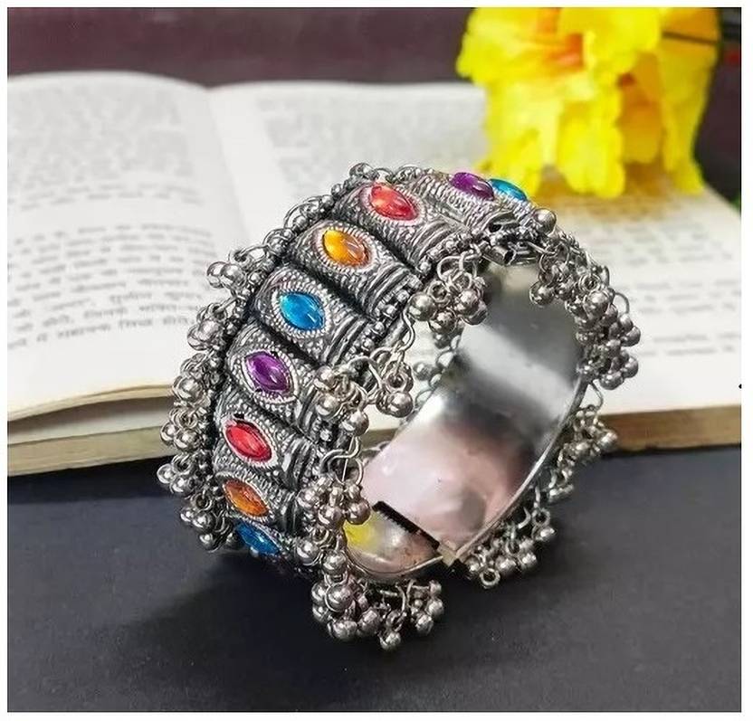 Antique Silver Bracelet Bangles For Girls , Handcrafted Tribal Cuff Bracelet