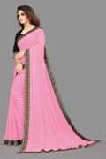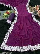 this elegant georgette saree features a plain solid lace border that adds a touch of sophistication and charm. designed to offer a graceful drape and effortless style, it is perfect for festive occasions, parties, and casual events. comes with an unstitched blouse piece of 0.8 meters, allowing you to customize the fit and style. the saree’s simple yet classy border makes it a versatile addition to any wardrobe, ideal for women who love timeless elegance and modern trends.