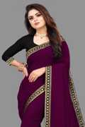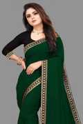 elegant georgette saree with plain solid lace border – lightweight party wear saree, designer ethnic saree, casual festive saree, stylish embroidered lace saree for women