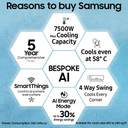 Built to last, the Samsung Bespoke AC features DuraFin Ultra, a corrosion-resistant coating that extends the life of the heat exchanger. The Triple Protector Plus technology provides added protection from power surges, while the coated copper tubes offer an improved resistance against environmental wear and tear.