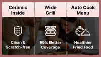 The Wide Grill significantly improves grilling and browning, cooking food more evenly by extending coverage.
