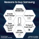 Thanks to its Digital Inverter technology, the Samsung Refrigerator facilitates energy efficiency, low operational noise, and long-lasting durability. Additionally, in response to the cooling requirements, this refrigerator's Digital Inverter Compressor automatically modifies its speed.
