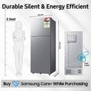 This Samsung Frost-free Double Door Top Mount refrigerator is an energy-efficient, low-noise operating appliance with a long-lasting performance.