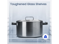 The toughened glass shelves of this fridge can handle a weight of up to 150 kg.