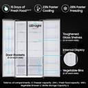 Sporting AI technology, the Samsung 653 L Side-by-side Refrigerator can map its energy usage patterns and estimate its power consumption. In case, the calculated energy consumption goes beyond your preset target, the AI technology recommends the activation of an energy-saving mode, thereby limiting its power consumption.