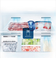 This refrigerator uses a Smart Sensor System that utilizes internal and external sensors to monitor conditions and adjust the settings based on a variety of factors. This way, when you or your family members frequently open the refrigerator's doors on a hot day, the Smart Sensor System speeds up the compressor to keep the interior cool and your food fresh. At night, when your home is much cooler, and you don't open the doors often, the compressor slows down.