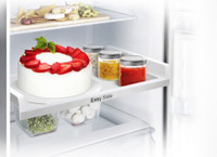 When your refrigerator is loaded with items, you often find yourself navigating over an obstacle of food items to reach the item you want. The Easy Slide shelf is built on rolling hinges and can easily be pulled out. This lets you efficiently organize and easily access your food items. This feature also lets you see exactly what you have stored in the back of your refrigerator.