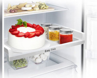 The easy slide shelves let you efficiently organise and navigate your food in this refrigerator.