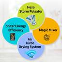 Thanks to this washing machine's Magic Mixer feature, you won't have to worry about improper mixing of detergent while washing your clothes. All you have to do is add water and detergent and choose the Magic Mixer option. After this, this washing machine's Hexa Storm Pulsator activates the strong water current that completely dissolves the detergent. As a result, this washing machine reduces the chance of leaving any detergent residue on your clothes.