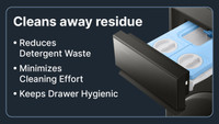 Stop wasting detergent and avoid the tedious task of cleaning the detergent drawer. The StayClean Drawer ensures that more of the detergent is washed away with a specially designed water flushing system. So, there’s less unsightly soap residue, and the tray stays cleaner and more hygienic.
