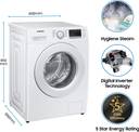 Samsung 7 kg 5-star Inverter with Hygiene Steam Fully Automatic Front Load Washing Machine White (WW70T4020EE/TL)