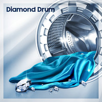 Featuring a soft curl design, this appliance’s Diamond Drum with diamond-shaped ridges gently washes garments. Also, its small water exit holes prevent clothes from getting stuck in them and damaging the fabric.
