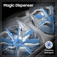 A Magic Dispenser in this appliance forms a powerful water vortex to dissolve the detergent and evenly disperse it among the clothes, right before the wash cycle commences. So, you won’t have to deal with detergent residue.