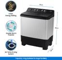Combining excellent performance with energy efficiency, the Samsung WT80B3560GY/TL 8 kg Semi-automatic Top-loading Washing Machine is an excellent addition to your home. Its Hexa Storm Pulsator creates a powerful and multidirectional water flow that effectively cleans your laundry. Additionally, this washing machine features two sideboards with ridges and three rollers that deliver a gentle scrubbing effect, offering thorough cleaning while minimising fabric damage.