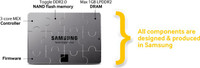Samsung combines the finest components to create superior-quality SSDs. Samsung uses the best quality NAND flash memory chips from its own fabrication lines for SSDs. Only the chips with the highest quality, top performance and greatest longevity potential are selected for SSDs, the most demanding of memory applications. With all the components, including controllers and DRAM, produced by Samsung, the quality of your SSD is assured. Advanced new firmware that optimizes how the components go together enables Samsung to serve up the right combination for your PC's best performance and reliability.