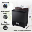 Constructed with an anti-corrosive and rust-resistant plastic body, this washing machine ensures long-lasting performance and eliminates any worries about corrosion.