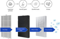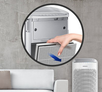 With a powerful Four Step Filtration System, this air purifier eliminates up to 99.9% ultrafine dust particles and harmful gases, thereby ensuring that you breathe nothing but pure air. The various stages include the Pre Filter stage, the Deodorization Filter stage, and the PM2.5 Filter stage. The fourth stage is Samsung's Virus Doctor Technology which effectively removes virus and bacteria.