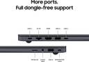 Slim yet mighty, Galaxy Book4 boasts a wide array of built-in ports. Plug in external devices via HDMI, two USB-A, two USB-C ports, microSD slot, and an RJ45 port for high-speed LAN connections.