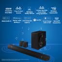 This soundbar supports HDMI eARC technology and HDMI 2.1 passthrough, ensuring seamless audio delivery. So, you can connect your game consoles and UBD players to this soundbar via your TV and experience 3D surround sound formats, such as Dolby Atmos the way they are intended.